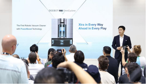 【环球网科技综合报道】9月8日消息,科沃斯在德国柏林国际电子消费品展览会(IFA)上发布多项创新成果。科沃斯集团副董事长、科沃斯机器人CEO钱程展示科沃斯在多场景清洁领域的最新突破,包括其首款搭载PowerBoost瞬时超充技术的无限续航滚筒洗地机器人地宝X11。